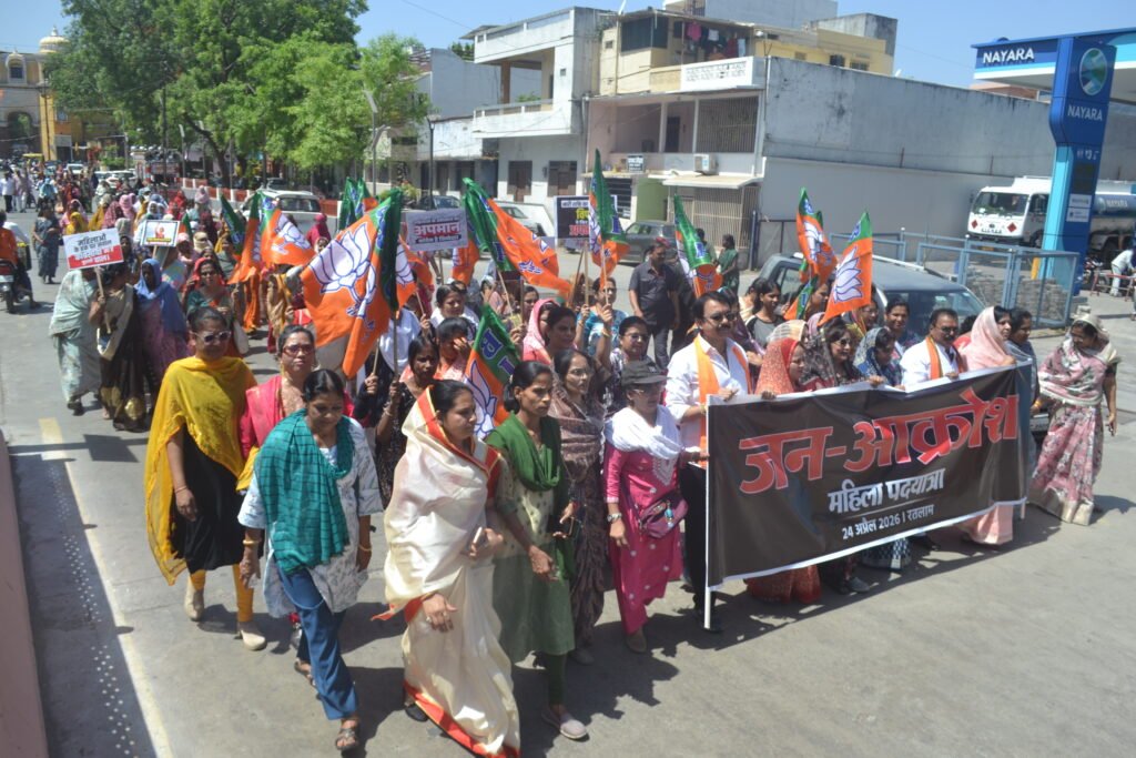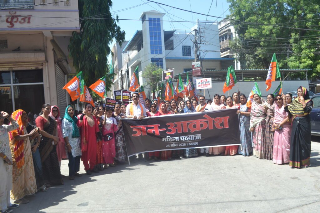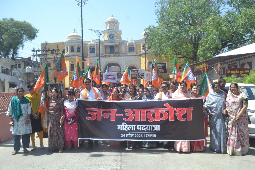 रतलाम में नारी शक्ति के साथ भाजपा ने निकाली जन-आक्रोश महिला पदयात्रा