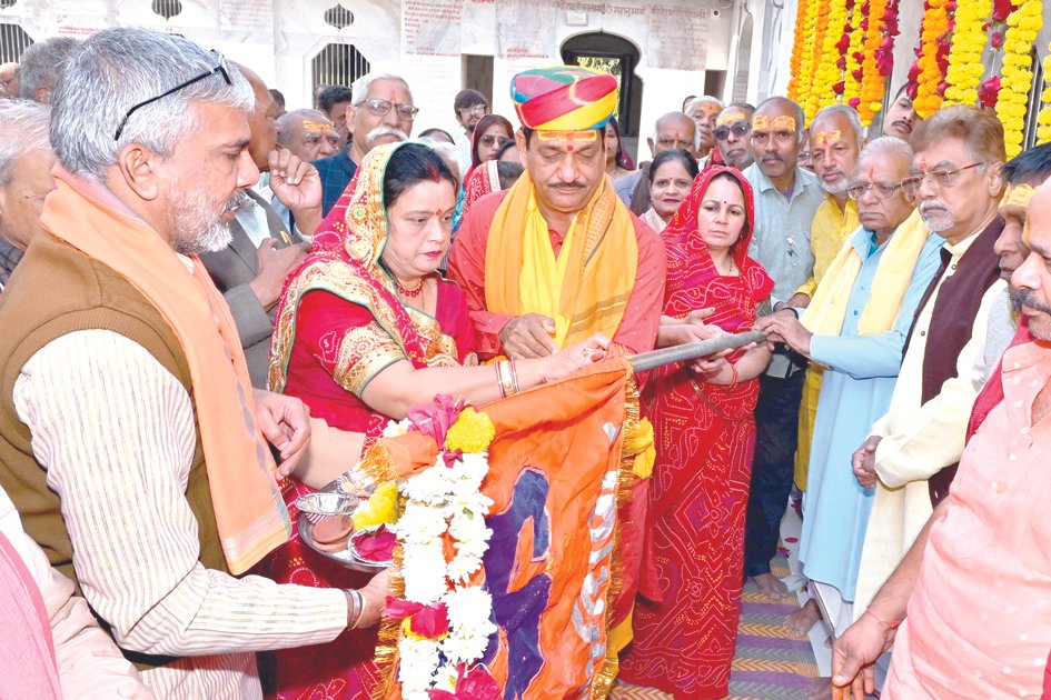 सनातन धर्म सभा के अध्यक्ष अनिल झालानी सहित उपस्थित धर्मालुजनों की उपस्थिति में यजमान दम्पत्ति द्वारा ध्वज की पूजन कर ध्वजारोहण किया। इस दौरान सनातन धर्म सभा के अध्यक्ष अनिल झालानी, पूर्व विधायक कोमलसिंह राठौर, नवनीत सोनी, डॉ. राजेन्द्र शर्मा, मनोहर पोरवाल, रमेश पाठक, ब्रजेन्द्र नंदन मेहता, पुष्पेन्द्र जोशी, मनोज शर्मा, हेमेन्द्र उपाध्याय, मुन्नालाल शर्मा, राजु हॉकी, सुरेश दवे, चेतन शर्मा, रमेश व्यास, पवन सोमानी, कैलाश सोनी, अविनाश व्यास, लालचंद टांक, मुकेश सोनी, ब्रदीलाल भगतजी, जनक नागल, सत्यनारायण पालीवाल, धन्नालाल पाटीदार, छोगालाल पाटीदार, रतनलाल पाटीदार, श्रीमती राखी व्यास एवं महिला मंडल सहित बड़ी संख्या में धर्मालुजन उपस्थित थे।