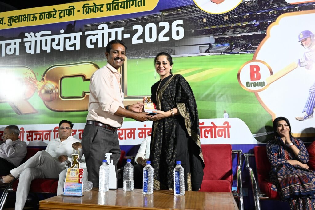 मुख्य अतिथि चैतन्य कश्यप मंत्री ने अपने उद्बोधन में कहा कि स्व कुशाभाऊ ठाकरे जी की स्मृति रतलाम चैंपियंस लीग क्रिकेट खिलाड़ियों में सबसे चर्चित प्रतियोगिता रहती हैं जिसमें रतलाम के खिलाड़ियों को पूर्ण मौका मिलता हे श्री चैतन्य कश्यप ने कहा कि टूर्नामेंट तो बहुत किए जाते है लेकिन अब हमें प्रशिक्षण केंद्रों की जरूरत है रतलाम में खेल प्रशिक्षकों से भी आव्हान करता हु कि हमारे हमारे युवाओं को सही मार्गदर्शन मिलेगा तो वह रतलाम का नाम देश दुनिया में करेंगे ।